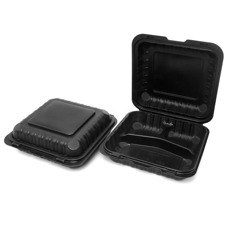 8x8 इंच सीपी 3 डिब्बे ब्लैक के साथ डिस्पोजेबल खाद्य कंटेनर