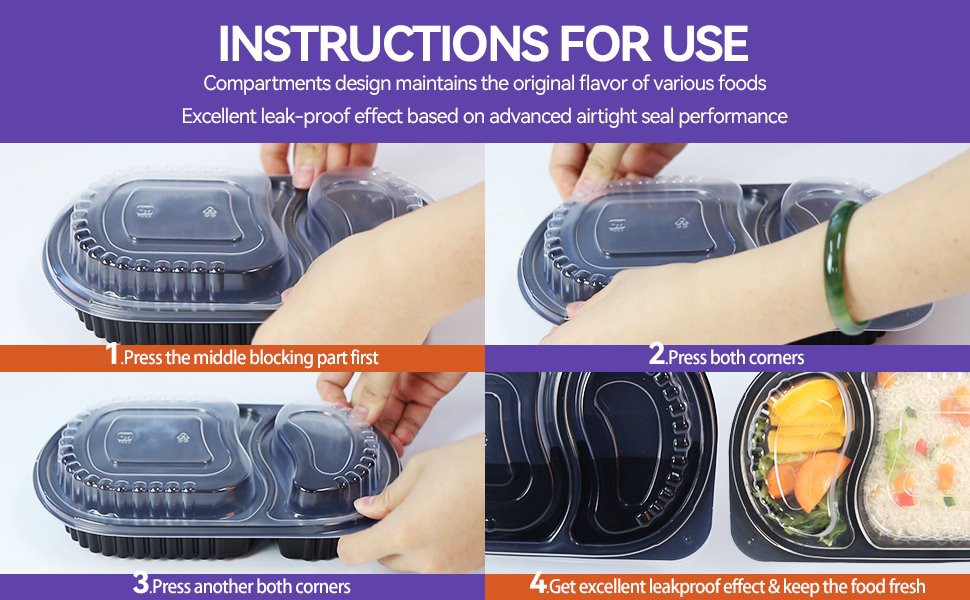 1. हमारे डिस्पोजेबल लंच बॉक्स को शादियों, स्कूल, पार्टियों, आउटिंग और रेस्तरां आदि के लिए जगह बचाने के लिए ढेर किया जा सकता है, और आपको एक सुविधाजनक अनुभव प्रदान करता है। जल्दी से ढक्कन बंद करें और आसानी से सलाद, बर्गर, केक, चावल और बहुत कुछ पैक करें।